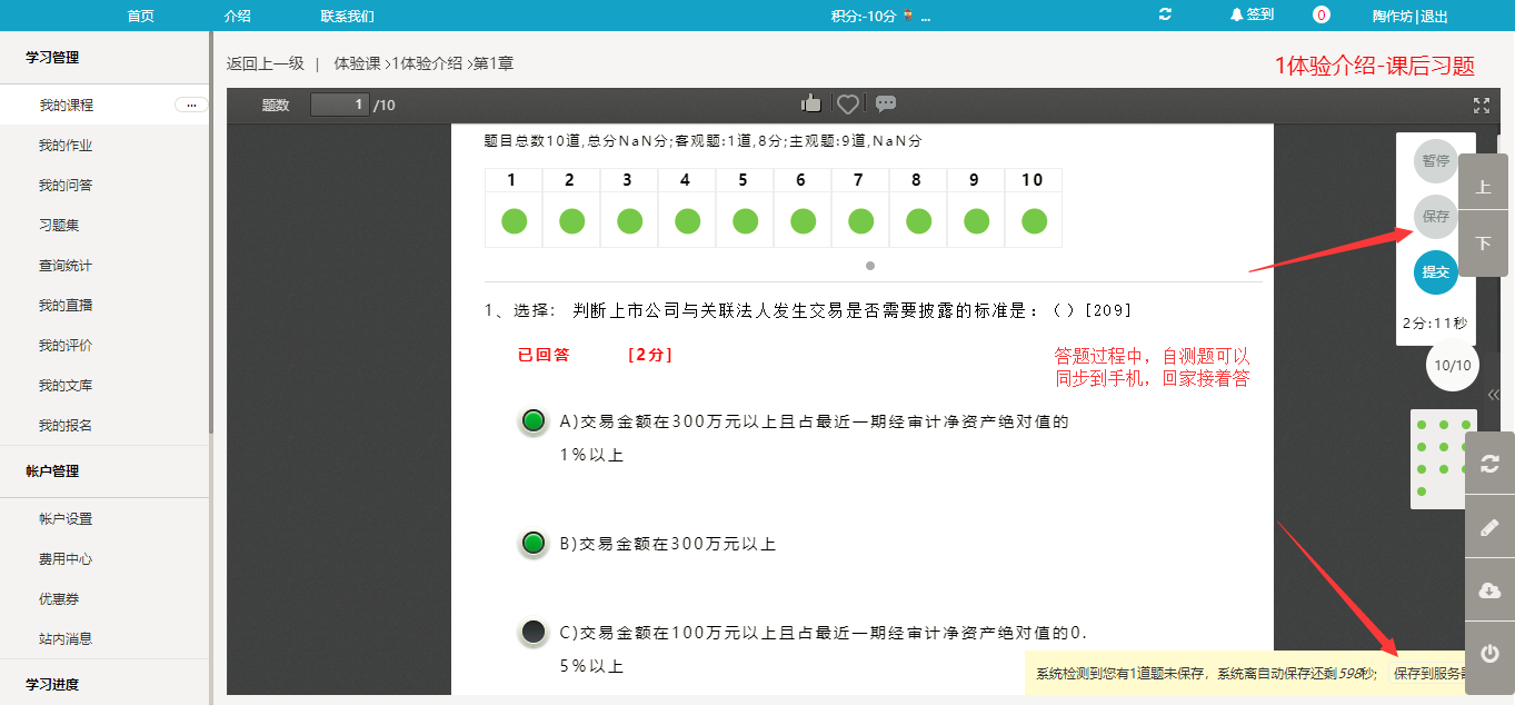 自測卷子,系統允許同步考題到不同設備,回家路上可以接著答題。到了公司再切換到公司電腦,到家切換到家里電腦,路上用手機,是您必備的備考利器。